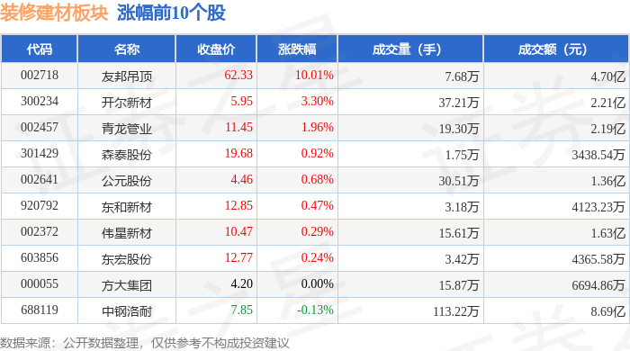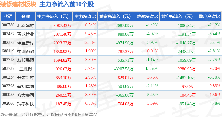拆建筑材板块从力资金净流出2.33亿元